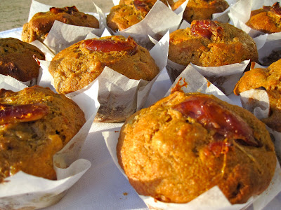 Olive oil is a gorgeous addition to these muffins. Olive oil is commonly used in good quality savoury cooking to add fresh, grassy fragrance. When it comes to cakes and deserts where we deal with sugary berries and chocolate chips, however, the olivey fragrance is not always appropriate. This recipe is a wonderful exception. Because we're dealing with a fruit that functions more like a vegetable, olive oil is a perfect complement.